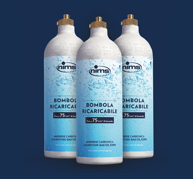 Scopri la bombola CO2 ricaricabile da 550gr fornita da Nims, perfetta per la gasatura della tua acqua fredda.